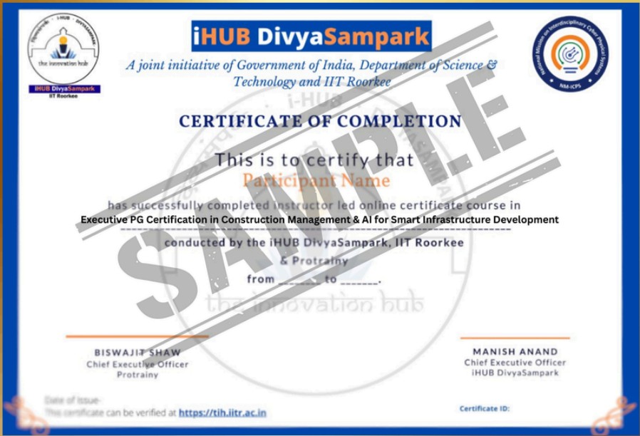 The Executive PG Certification in Construction Management & AI for Smart Infrastructure Development is a comprehensive program designed for working professionals aiming to transition into project leadership roles. It integrates core construction management principles with emerging technologies like AI, IoT, Digital Twin, and Smart Infrastructure to build future-ready project managers..